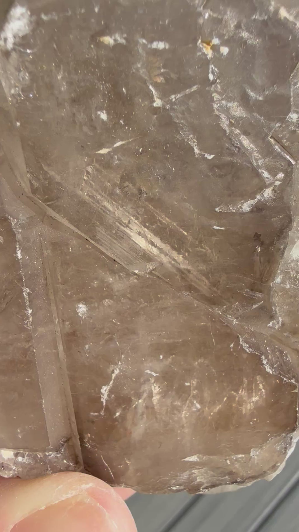 Crystal Attributes: Glassy Smoky *Elestial Quartz with beautiful *Skeletal formations within, possible stationary *Enhydros, an *Isis face, and a *Self-Healed backside into *Elestial/*Cathedral formations, with another mineral attached. .