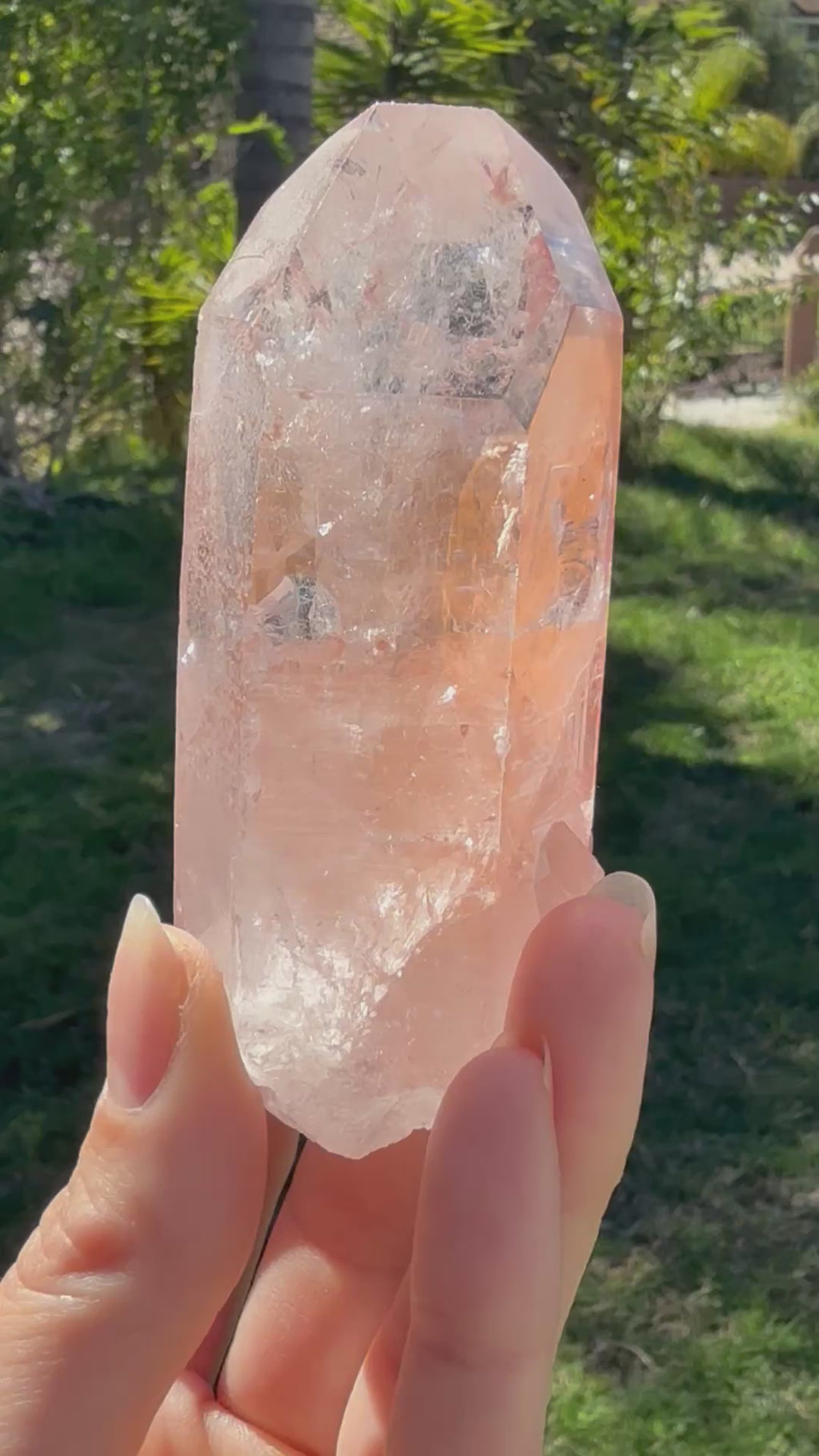 Personalized crystal reading below: Shipped direct from Brazil to myself, these magnificent beauties come from the region of Goiás, Brazil-a State bordering Minas Gerais. This was a one time find, in which I obtained the entire lot. Each has a beautiful pink Hematite coating, with contrasting extreme silver-hued clarity.