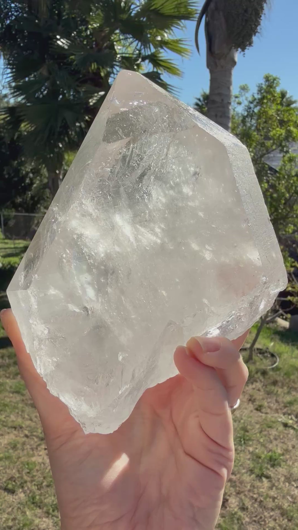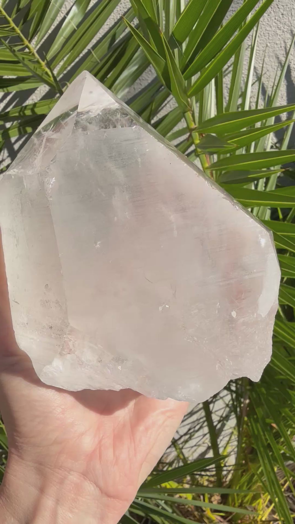 Crystal attributes: So beautiful! A Divine *Feminine point that self stands, has one *Isis face with *Sigils, multiple beautiful *Rainbows, a *Conchoidal Fracture, *Self-Healing near the base, and several *Empathetic areas as seen in video/photos.